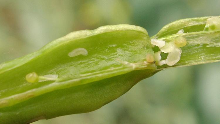 Mechanické poškození šešulí, které se deformují a dříve dozrávají.