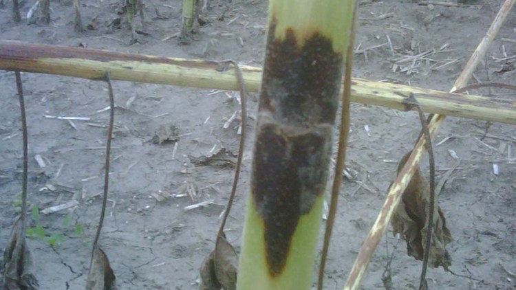 Phoma macdonaldi je patogen, kterého lze nalézt ve všech hlavních oblastech pěstování slunečnice. Infekci způsobují spory, které se šíří větrem. Infekci podporují teplé a vlhké podmínky. Nejprve houba proniká skrz list a prorůstá skrz něj směrem ke stonku, kde lze po odkvětu nalézt typické tmavě hnědé až černé léze. V závislosti na závažnosti infekce může být lézemi pokryta i velká část stonku. Těžká infekce může způsobit výnosové ztráty ve výši 25%. Doporučuje se 1 ošetření ve fázi hvězdy.